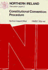 The Northern Ireland Act 1974 provides for the election of a Constitutional Convention to consider 'what provision for the government of Northern Ireland is likely to command the most widespread acceptance throughout the community there'. Elections for the Convention will take place within a few months and I shall aim to give about one month's notice of the actual date. In September 1974 I published a discussion paper 'Northern Ireland: Finance and the economy'. This provided facts about the financial arrangements between Great Britain and Northern Ireland together with information about economic matters. Its purpose was to aid the Convention in its work. At that time I undertook to publish a further discussion paper containing information on possible ways in which the work of a convention might be organised. This paper fulfils that undertaking and draws on related experience in other countries. The Convention will take place under the authority of the Westminster Parliament. Northern Ireland is a part of the United Kingdom and it is for this reason that the report of the Convention will be transmitted to the Westminster Parliament which alone has the authority to decide what is to be done and which has the legislative power to make that decision effective. Agreement in the Convention by the elected representatives of the people of Northern Ireland will represent the best and most promising basis for the consideration which Parliament will, in due course, give to replacing the present temporary arrangements for the government of Northern Ireland. The Convention will not be a law-making body. It will not be an Assembly. If it seeks to proceed simply by majorities trying to coerce minorities or minorities being obstructive rather than constructive, then it will fail. If the Convention does not pursue the search for concessions, if it seeks solely to count heads rather than to reconcile differences, then it will fail. It will have failed not only to meet its statutory terms of reference but, even more seriously, it will have failed the people of Northern Ireland. The price of failure would be high. There is no ready made alternative solution. The aim of the British Government is that through the Convention the people of Northern Ireland should be given the chance to chart Northern Ireland's future together. The Convention is a deliberative body. It offers that opportunity for which so many of the people of Northern Ireland have asked - the chance to discuss and seek agreement among themselves. This is true of the Convention itself. The opportunity is also there for every group in Northern Ireland with views of its own to put them forward so that the Convention may, if it wishes, consider them. Now is the opportunity for constructive discussions to take place between not only those of like mind, but also those with differing or conflicting opinions. In a democracy law and order are not restored and maintained by the forces of law and order alone. They must be supported by a society which provides genuine opportunities for all its law-abiding members to participate in the institutions of government. The direction of public affairs in government can and must be shared by those from all parts of the community who are concerned for the good of all the people in Northern Ireland. What form this sharing and partnership could best take to gain widespread acceptance will be a matter for the Convention to discuss.
